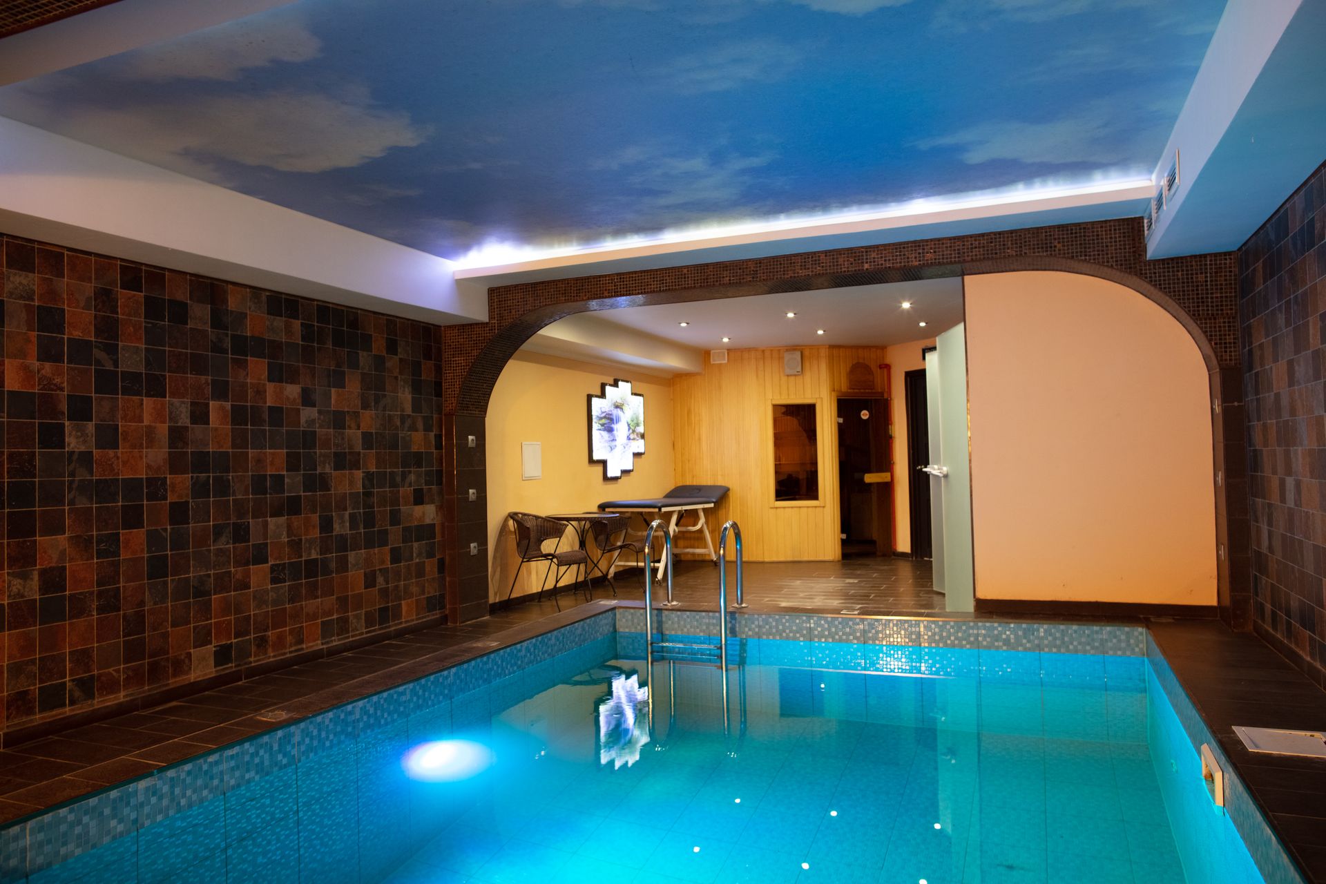 В сауне есть просторная русско-финская парная и бассейн 3 x 4.